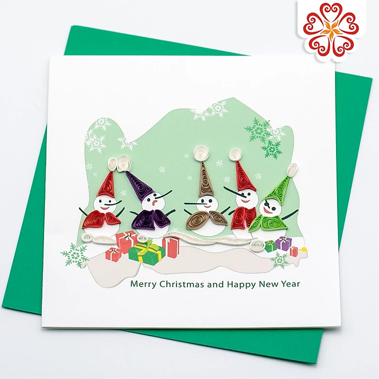 Thiệp giấy xoắn giáng sinh 15 x 15 cm - Người tuyết dễ thương