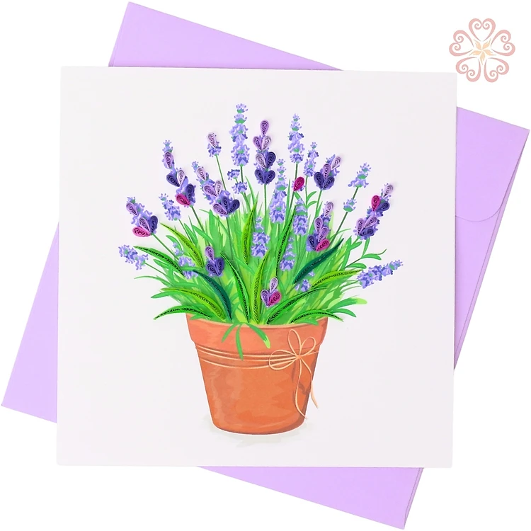 Thiệp Giấy Xoắn Nghệ Thuật - Chậu Hoa Tím