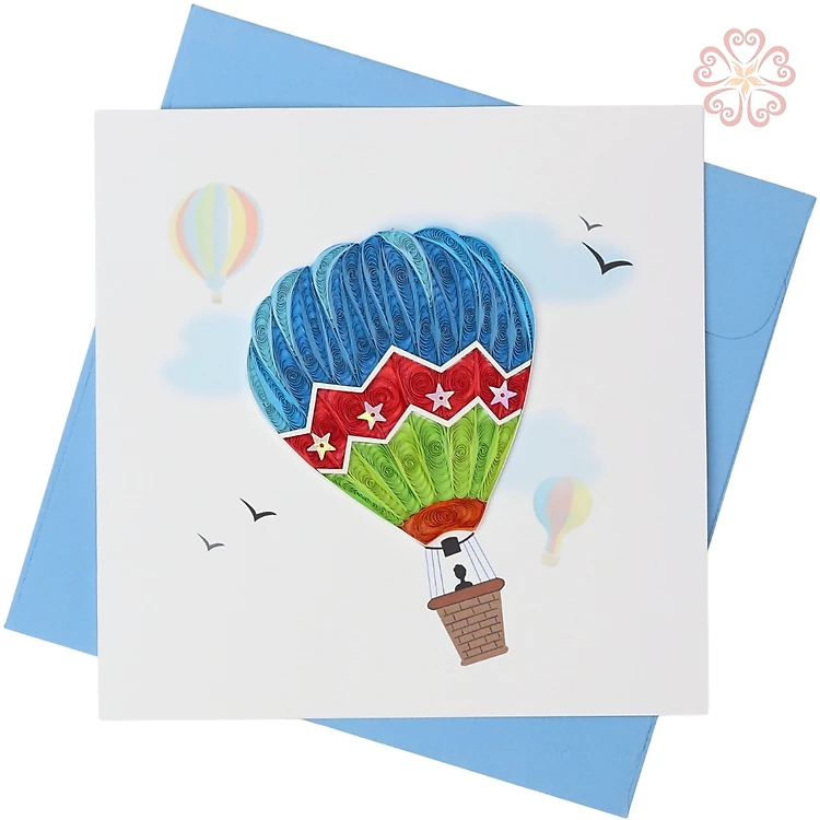 Thiệp giấy xoắn nghệ thuật - khinh khí cầu best wish - size 15x15cm