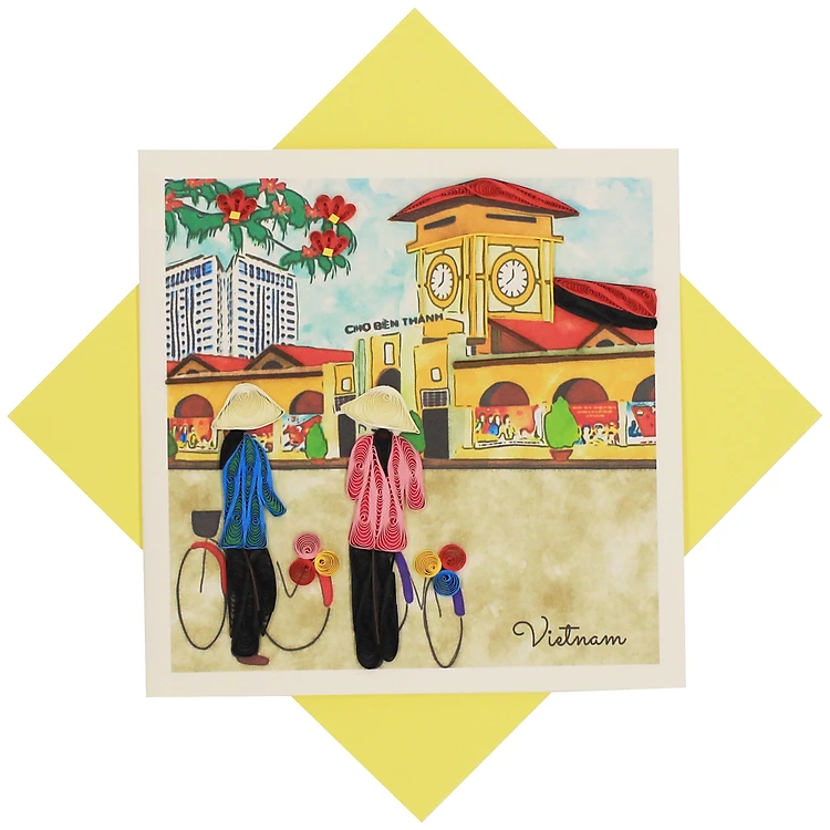 Thiệp giấy xoắn chợ Bến Thành Sài Gòn - Thiệp handmade Việt Nam - Quà tặng souvenir thủ công độc đáo - Có thể để bàn hoặc treo tường - Quà tặng đẹp và ý nghĩa dành cho bạn bè, khách hàng, đối tác nước ngoài...
