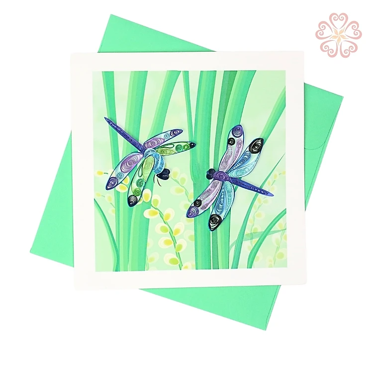 Thiệp Quilling nghệ thuật - chuồn chuồn - size 15x15cm