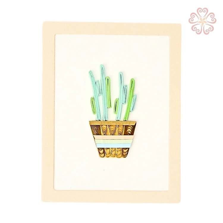 Thiệp Quilling nghệ thuật có khung - chậu cây nhỏ - size 8.5 x 6.5 cm