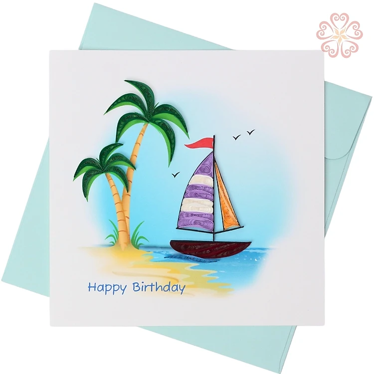 Thiệp sinh nhật giấy xoắn - con thuyền nhỏ - size 15x15cm