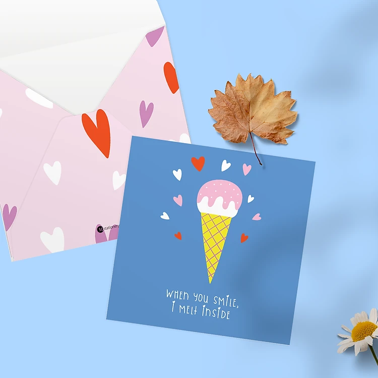 Thiệp tình yêu, Valentine, tỏ tình, SDstationery I Melt Inside, hình cây kem ngọt ngào, vuông 12x12 cm