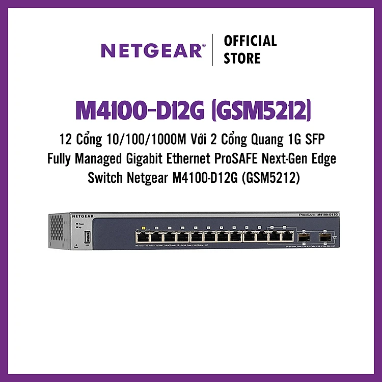 Thiết Bị Chia Mạng Để Bàn 12 Cổng 10/100/1000M Với 2 Cổng Quang 1G SFP Fully Managed Gigabit Ethernet ProSAFE Next-Gen Edge Switch Netgear M4100-D12G (GSM5212) - Hàng Chính Hãng