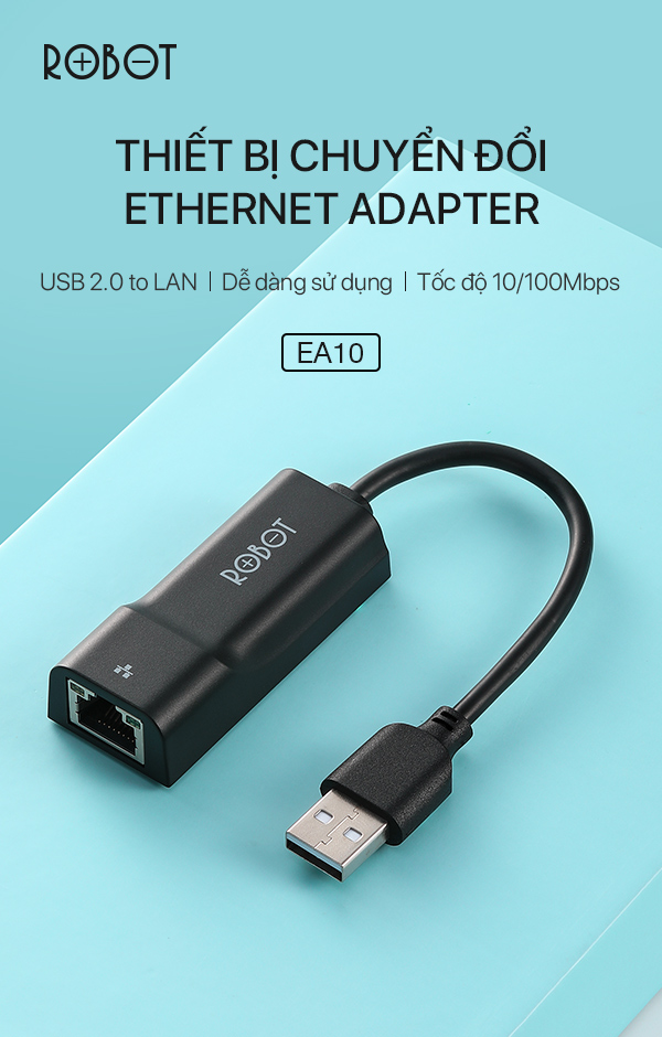 Thiết Bị Chuyển Đổi Ethernet Adapter ROBOT EA10 USB 2.0 To LAN Tốc Độ 10/100Mbps - Hàng Chính Hãng