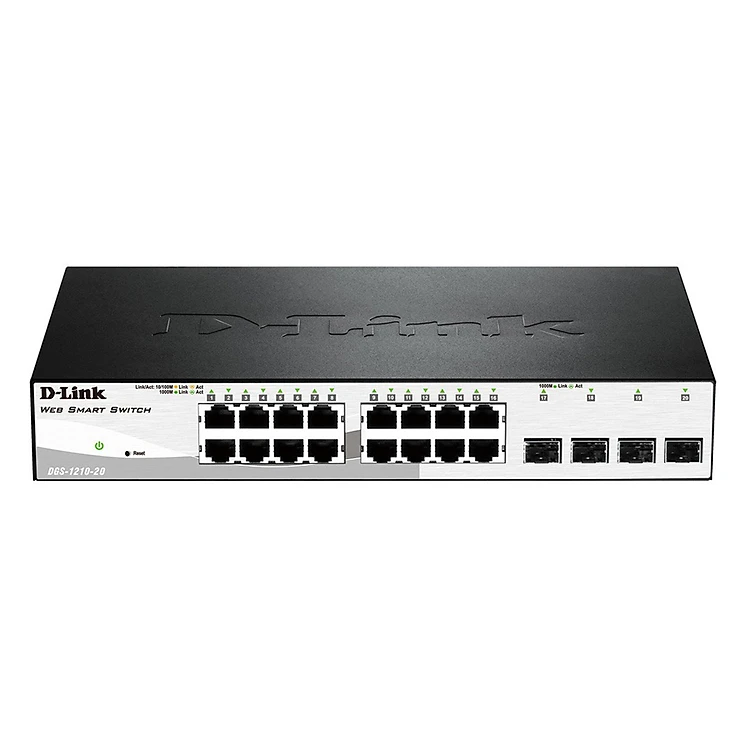 Thiết Bị Chuyển Mạch Dlink DGS-1210-20 là thế hệ mới nhất của dòng sản phẩm thiết bị chuyển mạch được trang bị cổng cấp nguồn Power over Ethernet (PoE), các cổng giao tiếp vật lý, hỗ trợ nhiều giao diện quản lý và các tính năng nâng cao của Layer 2. Với tất cả tính năng trên, dòng sản phẩm DGS-1210 sẽ cung cấp một giải pháp hiệu quả và tiết kiệm chi phí để mở rộng hệ thống mạng doanh nghiệp. DGS-1210 là một PoE Smart Managed Switch cung cấp 24 cổng 10/100/1000 Base-T PoE với 4 cổng kết hợp Gigabit SFP/RJ45.