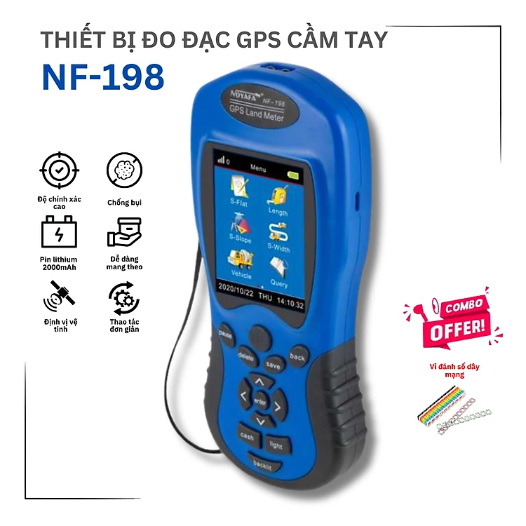 Thiết bị đo đạc GPS NF-198: Độ chính xác cao, màn hình màu lớn, tính năng đo diện tích và chiều dài đa dạng, tích hợp Maps, sử dụng trong môi trường tối và pin sạc lithium bền bỉ – giải pháp toàn diện cho đo lường đất đai - Hàng Nhập Khẩu