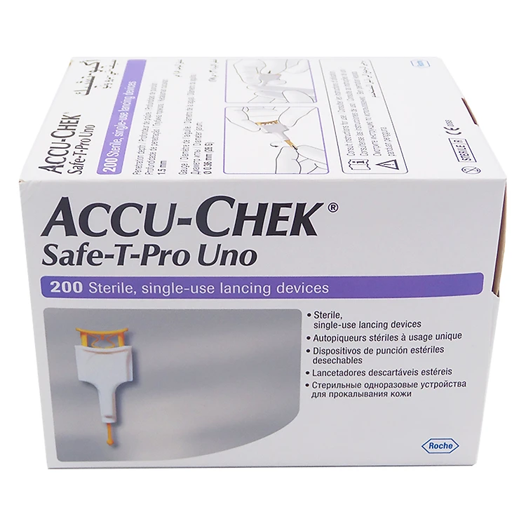 - Thiết Bị Lấy Máu Đã Có Kim Accu-chek Safety Pro Uno 200 đã tích hợp kim, được thiết kế đặc biệt để sử dụng tại cơ sở Y tế với các ưu điểm