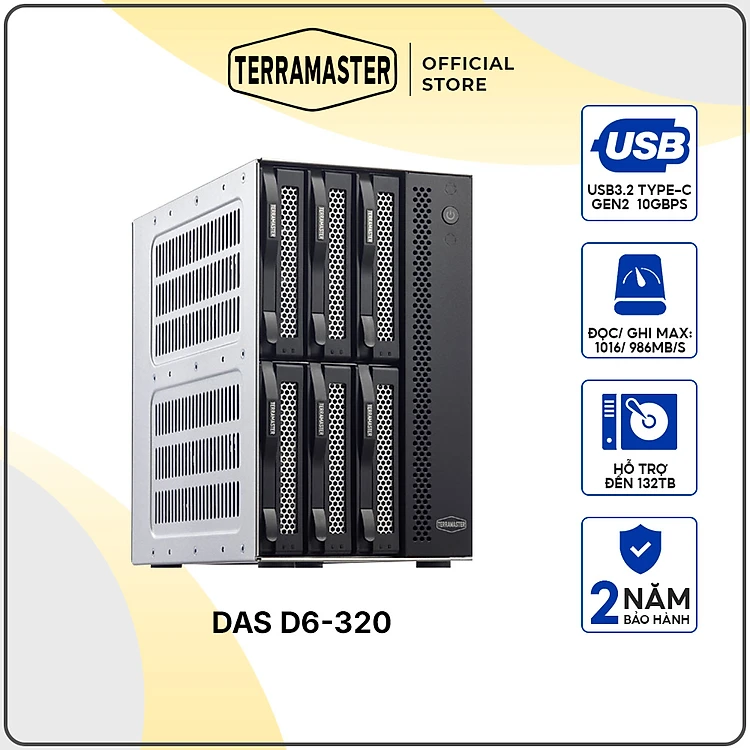 Thiết bị lưu trữ DAS TerraMaster D6-320 6-bay Hàng chính hãng