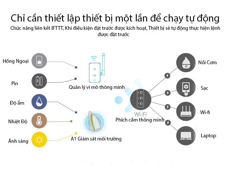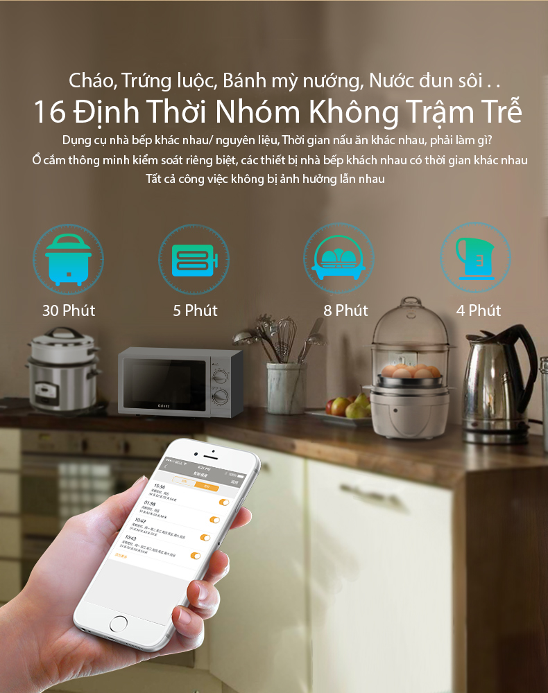 - Khả năng cài đặt hẹn giờ bật/tắt cho các thiết bị điện