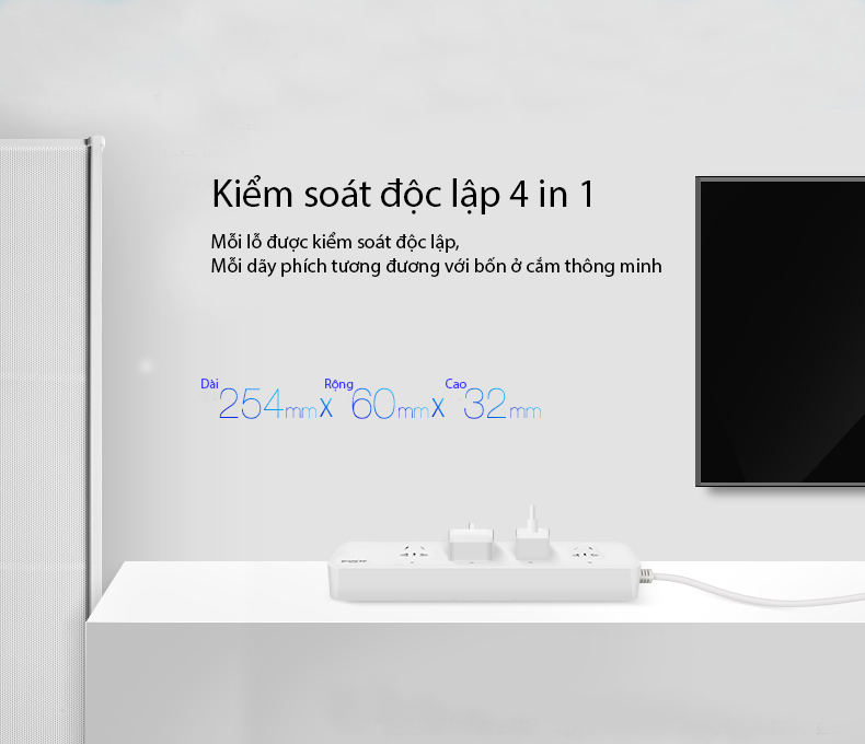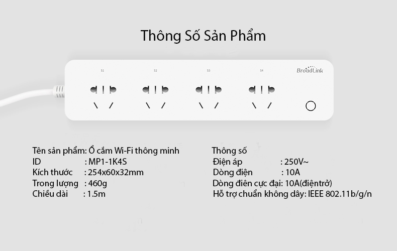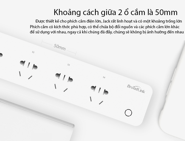 - Ổ Cắm Điều Khiển Từ Xa bao gồm 4 ổ cắm, khoảng cách giữa các ổ cắm là 50mm