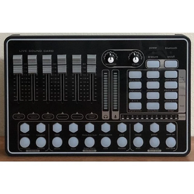 là sản phẩm card âm thanh mới nhất trong quý 3 năm 2018 đang là trào lưu của các bạn yêu ca hát trên toàn Châu Á, tương thích với nhiều thiết bị như smartphone, laptop, pc, máy tính bảng. Kết nối Bluetooth tới bất cứ thiết bị công nghệ ( Điện thoại,máy tính bảng ,,,)để lấy tín hiệu âm thanh nền Với tính năng làm méo giọng hát, thành giọng trẻ em, người già, Khả năng chèn các hiệu ứng âm thanh vào các đoạn thu như tiếng,gamer, vỗ tay, tiếng hò reo, nhạc cổ vũ, tiếng chim kê với 21hiệu ứng âm thanh, sẽ đem lại cho bạn trải nghiệm thu âm vô cùng thú vị. Giả lập auto tune theo tone bài hát khá tốt Ưu điểm nổi bật của Sound card thu âm H9 so với các sản phẩm cùng loại khi hầu hết phải chạy nguồn điện trực tiếp thì H9 được trang bị pin dung lượng 1500mah, có thể sử dụng 4h liên tục… Việc vận chuyển thiết bị cũng trở nên dễ dàng bạn có thể mang Soundcard H9 khi đi du lịch, thu âm và hát Karaoke, Livestream ở bất cứ đâu. Điều đặt biệt là sản phẩm H9 hỗ trợ tốt cho các gamer làm chương trình live stream trên youtube Đồng thời ba điện thoại di động hoạt động. Một đệm, hai trực tiếp trên các nền tảng khác nhau. Máy tính trực tiếp. Máy tính di động cũng được phát trực tiếp. *Bộ Full sản phẩm bao gồm: -Dây live stream chuẩn CCTA không kén điện thoại -Dây 3,5 lấy nhạc nền (youtube...) -Dây USB kết nối máy tính kiêm sạc pin