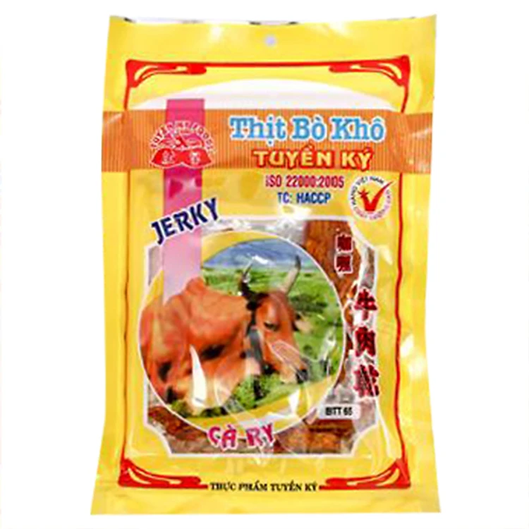 Thịt Bò Khô Tuyền Ký Vị Cà Ri Gói 35g Khô bò là một trong những món ăn yêu thích của nhiều người, từ đối tượng trẻ nhỏ cho đến những người lớn. Thịt Bò Khô Tuyền Ký Vị Cà Ri lựa chọn nguồn thịt bò đảm bảo chất lượng để đưa vào sản xuất trên dây chuyền hiện đại để đem đến cho người dùng một món ăn hấp dẫn, đậm đà hương vị. Sản phẩm đảm bảo an toàn cho sức khỏe người dùng.
