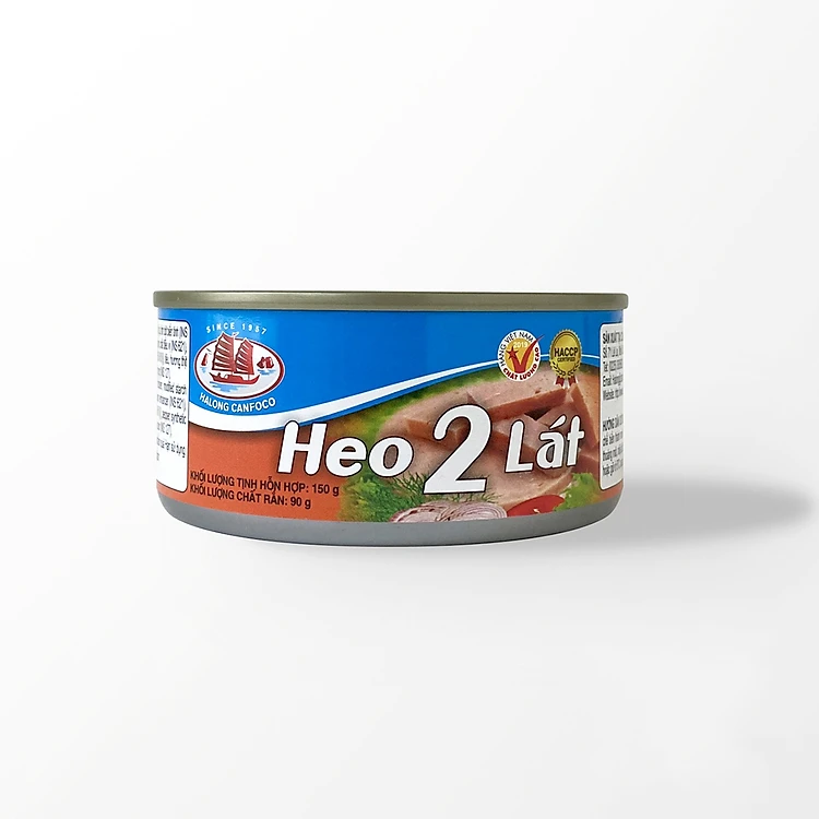 - Thịt heo 2 lát Hạ Long 150g cho khẩu phần ăn của 1-2 người. Thịt hộp thơm, vị đậm đà vừa phải.