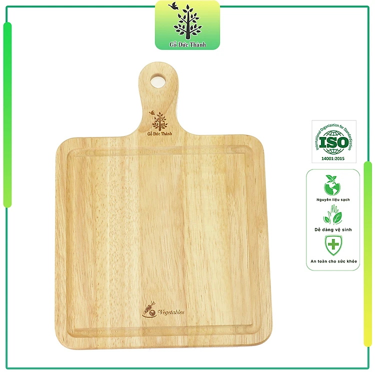 Thớt gỗ vuông tay cầm cắt rau củ | Gỗ Đức Thành 04433 | Đạt tiêu chuẩn xuất khẩu