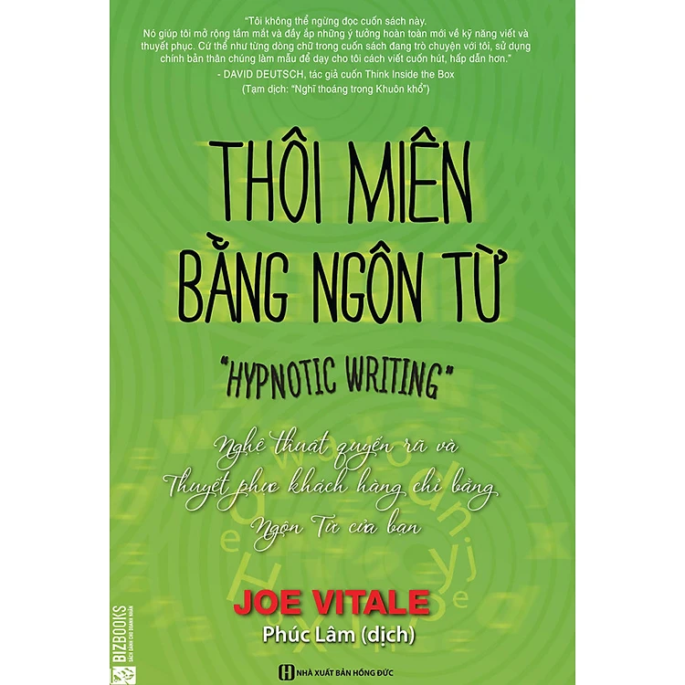 Chắc hẳn bạn sẽ không muốn độc giả chìm vào giấc ngủ và tôi cũng vậy. “Thôi miên bằng ngôn từ”, theo tôi, là bất cứ cách viết lách nào khiến người đọc không thể cưỡng lại mà cứ đọc, đọc nữa, đọc mãi. Những câu chữ khiến mắt bạn dán chặt vào trang sách. Ngôn từ mạch lạc, súc tích, và hiệu quả, lôi cuốn bạn đọc hết từng từ, từng chữ một. Và hơn thế nữa, Thôi miên bằng ngôn từ khiến bạn phải ghi nhớ – và hành động – theo những gì bạn đã đọc.