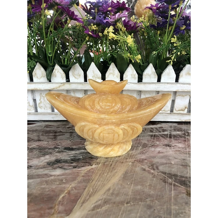 Thỏi vàng Thần Tài Kim Nguyên Bảo phong thủy chiêu nạp tài lộc đá ngọc hoàng long - Dài 15 cm