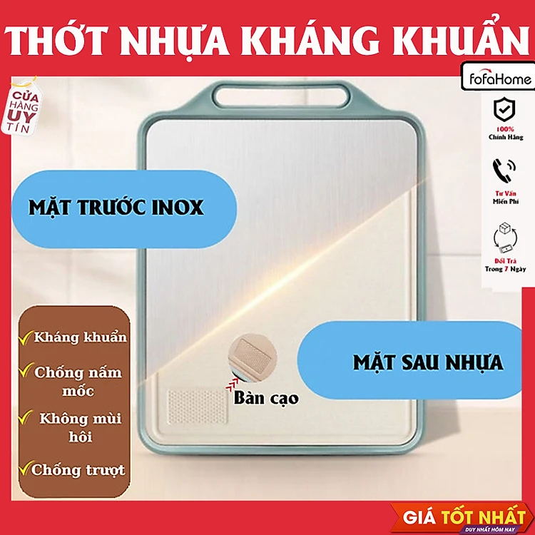 Thớt 2 Mặt Kháng Khuẩn, Mặt Trước Inox 304, Mặt Sau Nhựa PP Kháng Khuẩn, Chống Ẩm Mốc