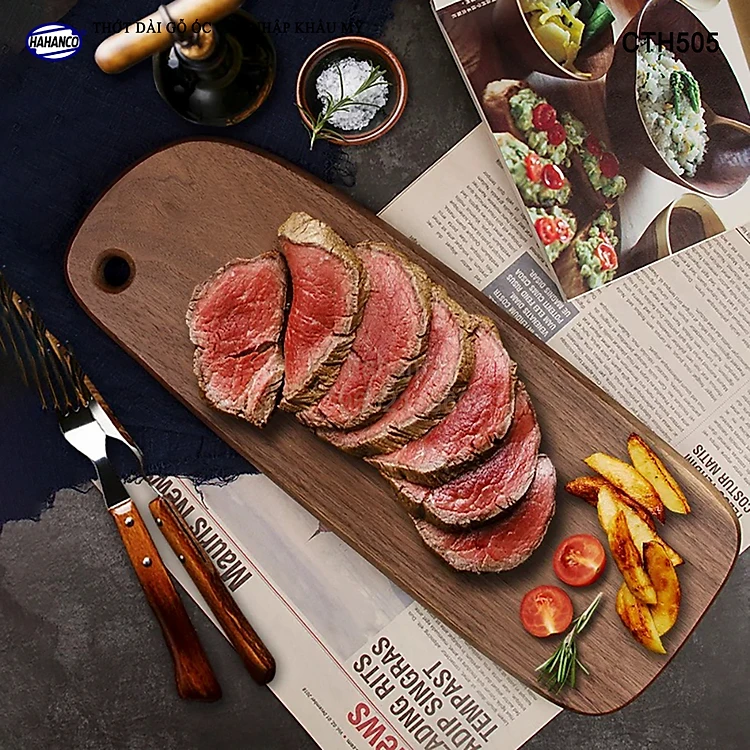 Thớt gỗ óc chó nhập khẩu Mỹ liền khối (Cỡ Dài) trang trí bàn ăn/ khay bánh mì/trái cây tráng miệng/bít tết/ Kê Thức Ăn Khi Thái/Pizza/Decor/chụp ảnh sản phẩm/Beef Steak- CTH505