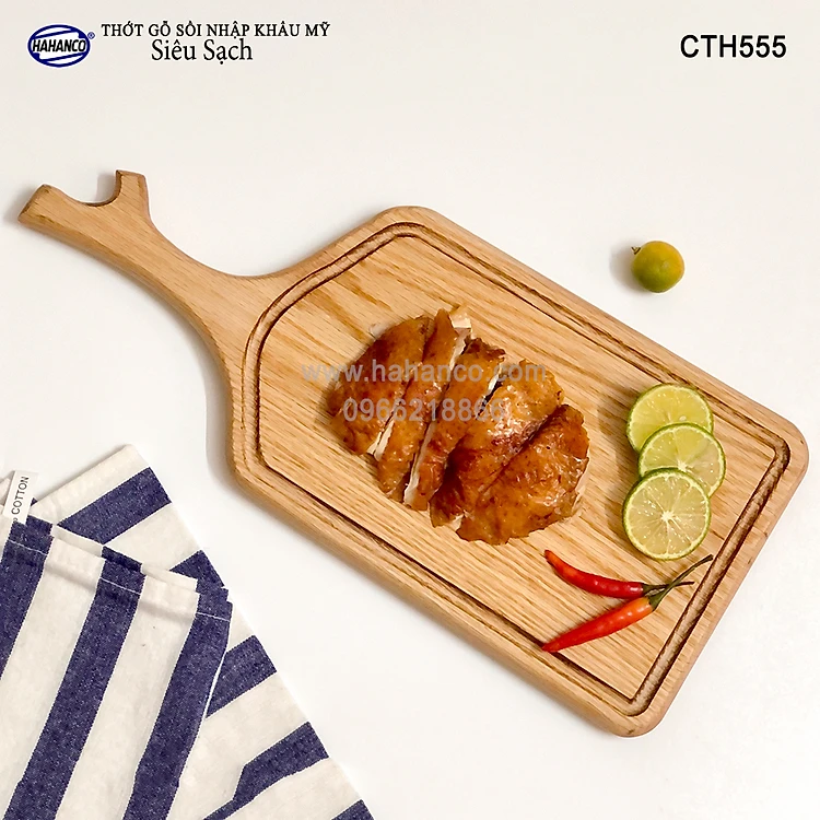 Thớt gỗ Sồi Mỹ (OAK) kiểu dáng sừng hươu có rãnh bao quanh tiện dụng (CTH555) hàng Xuất Khẩu Châu Âu - khay bánh mì/trái cây/ bít tết/ pizza/ phụ kiện chụp ảnh, bày món ăn trong nhà hàng - Sang trọng trên bàn ăn - HAHANCO