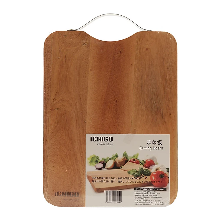 Thớt gỗ vát xà cừ Ichigo IG-4942 được thiết kế thông minh với phần tay cầm bằng inox không gỉ, vừa giúp bạn cầm nắm chắc chắn khi di chuyển vừa dễ dàng treo lên một góc tường, tủ khi không sử dụng, thích hợp cho mọi không gian bếp. Bề mặt thớt trơn nhẵn, không sản sinh ra mùn gỗ, dễ dàng vệ sinh chùi rửa sau khi sử dụng.