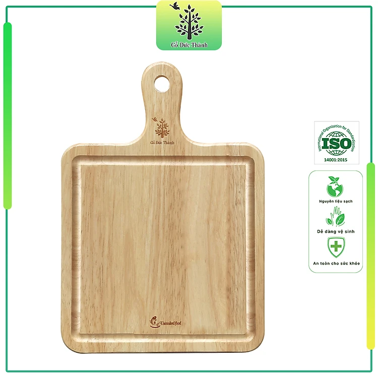 Thớt gỗ hình vuông có tay cầm dùng cắt thái, decor | Gỗ Đức Thành 06433 | Đạt tiêu chuẩn vệ sinh an toàn thực phẩm