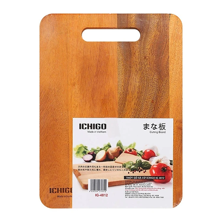 Thớt gỗ xà cừ Ichigo IG-4812 (29 x 21 cm) được thiết kế thông minh với lỗ treo, vừa giúp bạn cầm nắm chắc chắn khi di chuyển vừa dễ dàng treo lên một góc tường, tủ khi không sử dụng, thích hợp cho mọi không gian bếp. Bề mặt thớt trơn nhẵn, không sản sinh ra mùn gỗ, dễ dàng vệ sinh chùi rửa sau khi sử dụng.