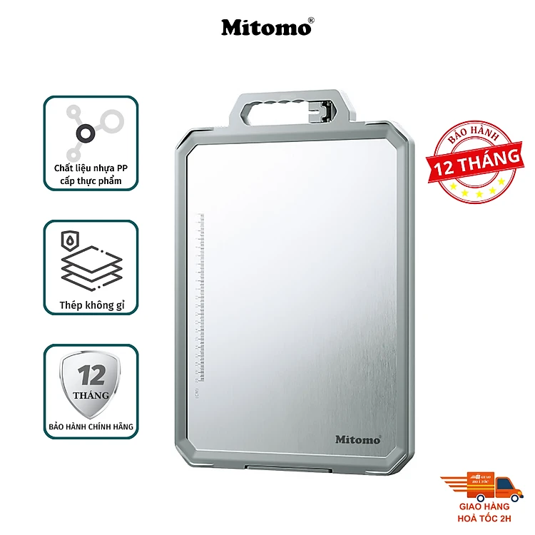 Thớt hai mặt kháng khuẩn inox 304 cao cấp, nhựa lúa mạch Mitomo MT-304PP Hàng chính hãng