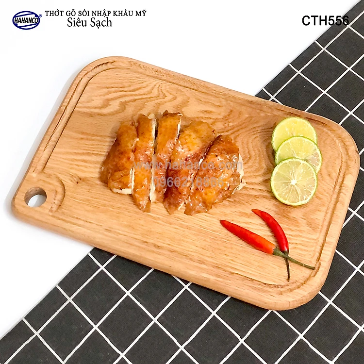 Thớt hình chữ nhật gỗ Sồi Mỹ (OAK) có rãnh bao quanh tiện dụng (CTH556) hàng Xuất Khẩu Châu Âu - khay bánh mì/trái cây/ bít tết/ pizza/ phụ kiện chụp ảnh, bày món ăn trong nhà hàng - Sang trọng trên bàn ăn - HAHANCO