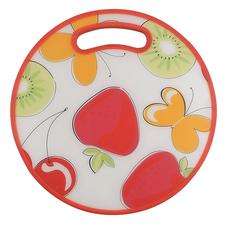 - Hình ảnh trang trí trên mặt thớt trang nhã, nhẹ nhàng giúp làm đẹp gian bếp của gia đình.