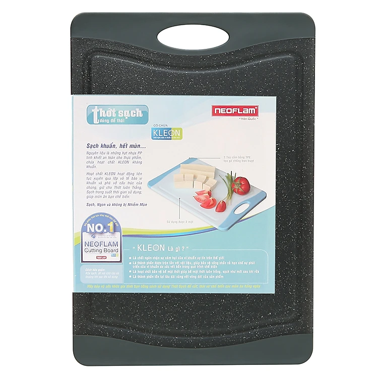 - Thớt Sạch Neoflam Flutto-M được làm từ những hạt nhựa PP tinh khiết, an toàn cho thực phẩm, có chứa hoạt chất Kleon - chất ngăn chặn vi khuẩn và nấm mốc xâm nhập. Vì thế bạn yên tâm sử dụng thớt chế biến các món ăn bổ dưỡng, đảm bảo vệ sinh cho những người thân yêu.