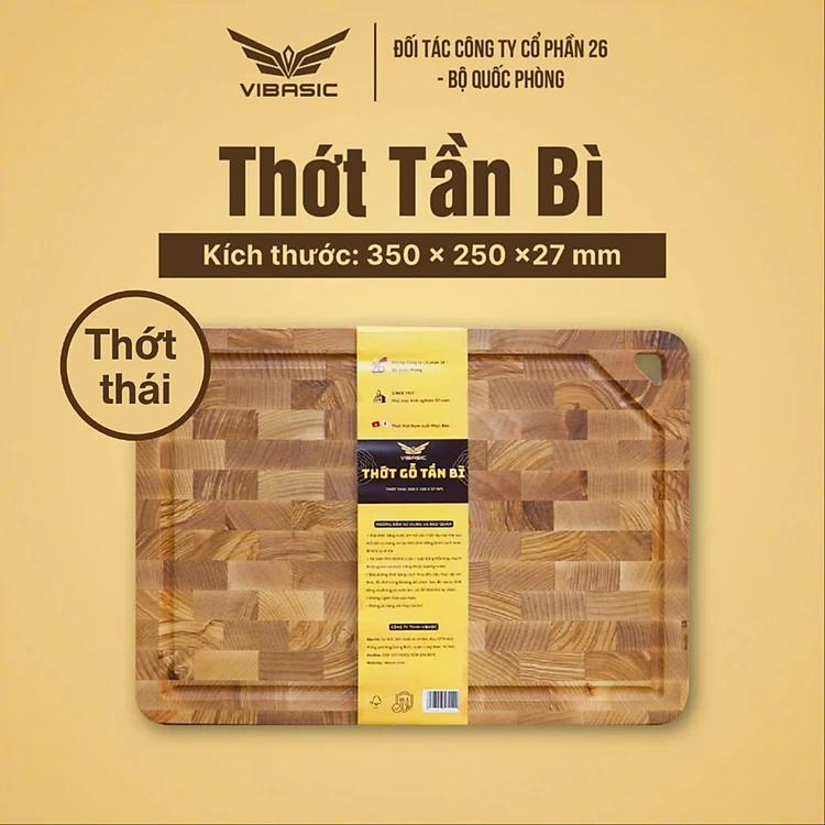 Thớt gỗ tần bì cao cấp chính hãng tiêu chuẩn quốc tế vibasic 35x25x2.7cm cắt thái đa năng, có móc treo