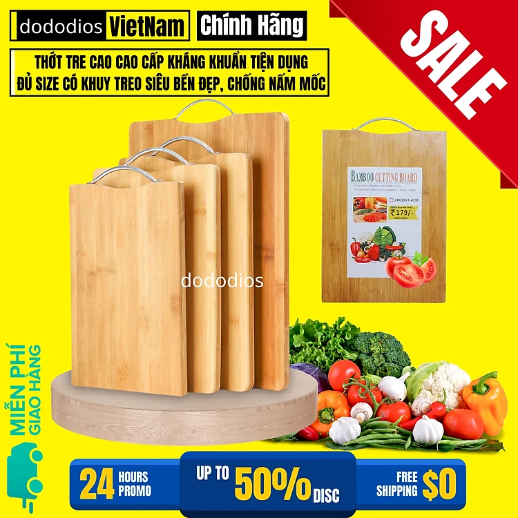 Thớt Tre Cao Cao Cấp Kháng Khuẩn Tiện Dụng - Thớt Gỗ Tre Kháng Khuẩn Đủ Size CÓ KHUY TREO Siêu Bền Đẹp, Chống Nấm Mốc - Hàng chính hãng dododios