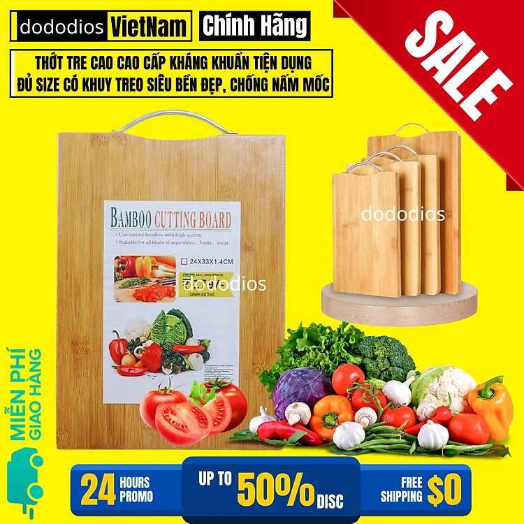 Thớt Tre Kháng Khuẩn Cao Cấp - Có Khuy Treo Chống Nấm Mốc Bền Đẹp Kháng Khuẩn Không Bị Mùn An Toàn Vệ Sinh - Chính hãng dododios
