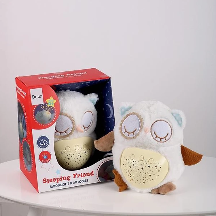 Thú bông cú vàng, voi xanh, bướm hồng chiếu sao, phát nhạc ru ngủ Doux