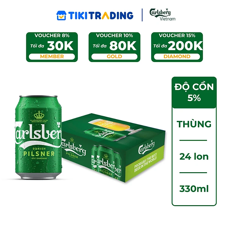 Thùng 24 lon Bia Danish Pilsner Carlsberg (330ml/lon) - Độ cồn 5%