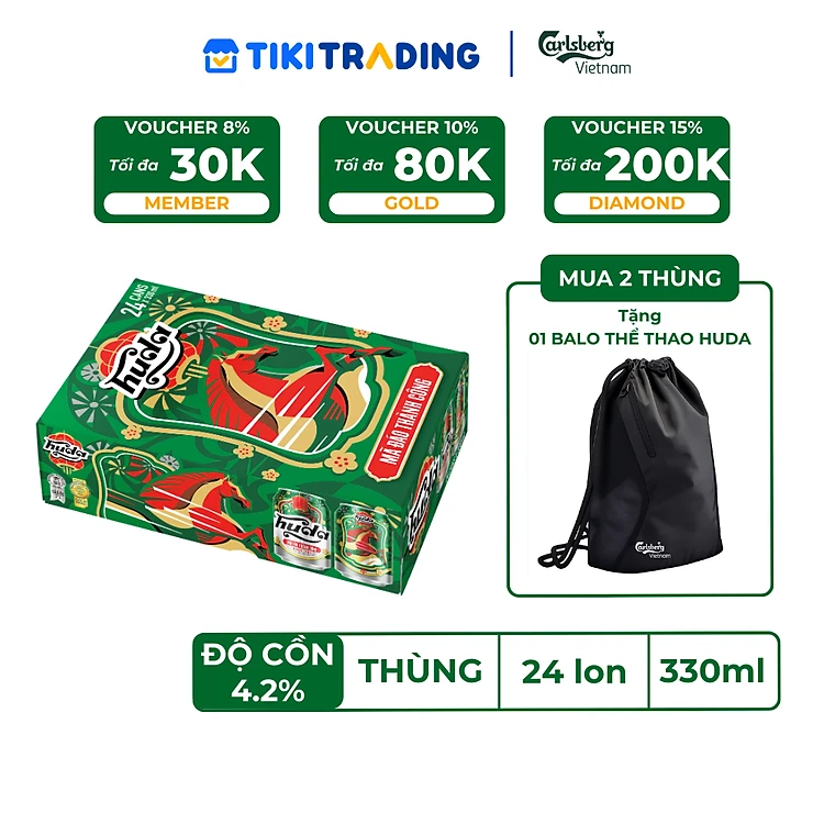 Thùng 24 lon Bia Lager Huda (330ml/lon) - Độ cồn 4.7%