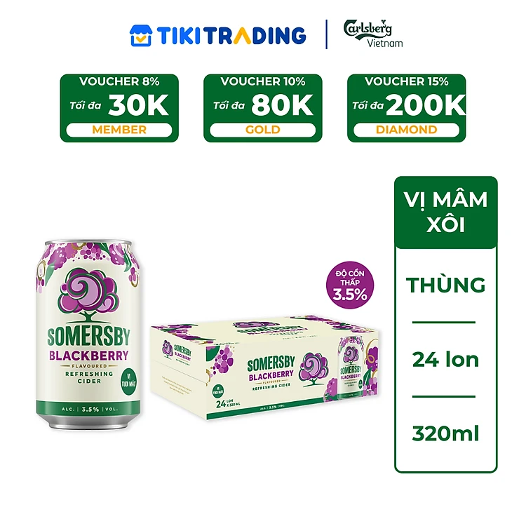 Thùng 24 lon Nước táo lên men Somersby vị Mâm Xôi (320ml/lon) - Độ cồn 3.5%