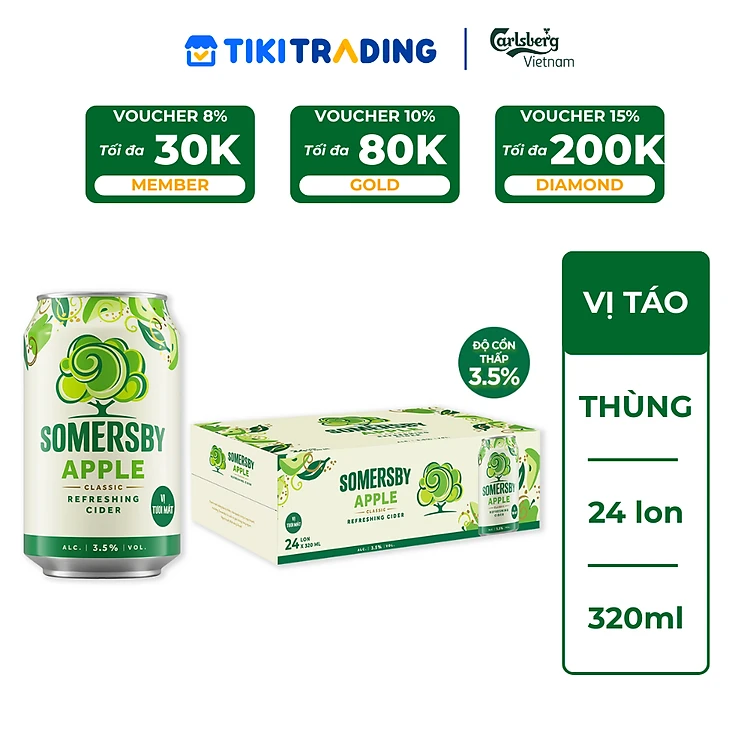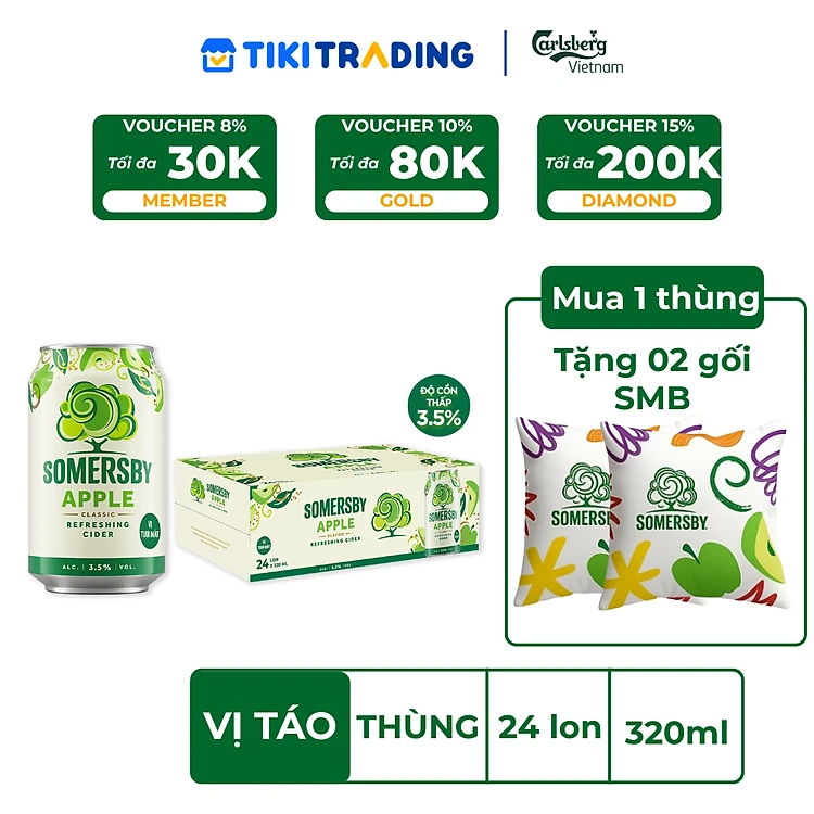 Thùng 24 lon Nước táo lên men Somersby vị Táo (320ml/lon) - Độ cồn 3.5%