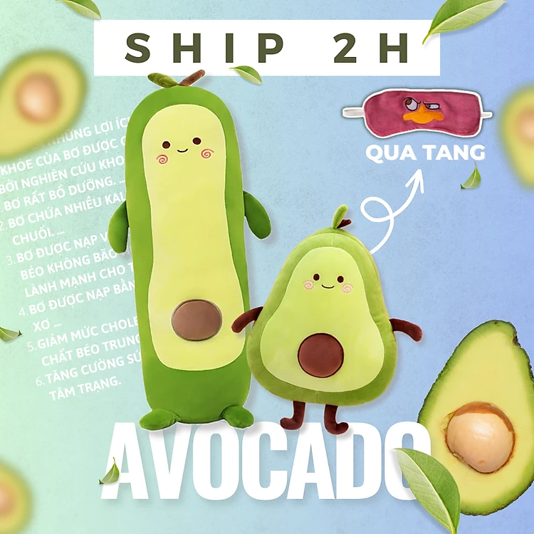 Thú nhồi bông trái bơ dài size bự dễ thương - Size từ 60cm đến 80cm - Quà tặng trái bơ dài nhồi bông đáng iu - Gối ôm mềm mịn cho bé