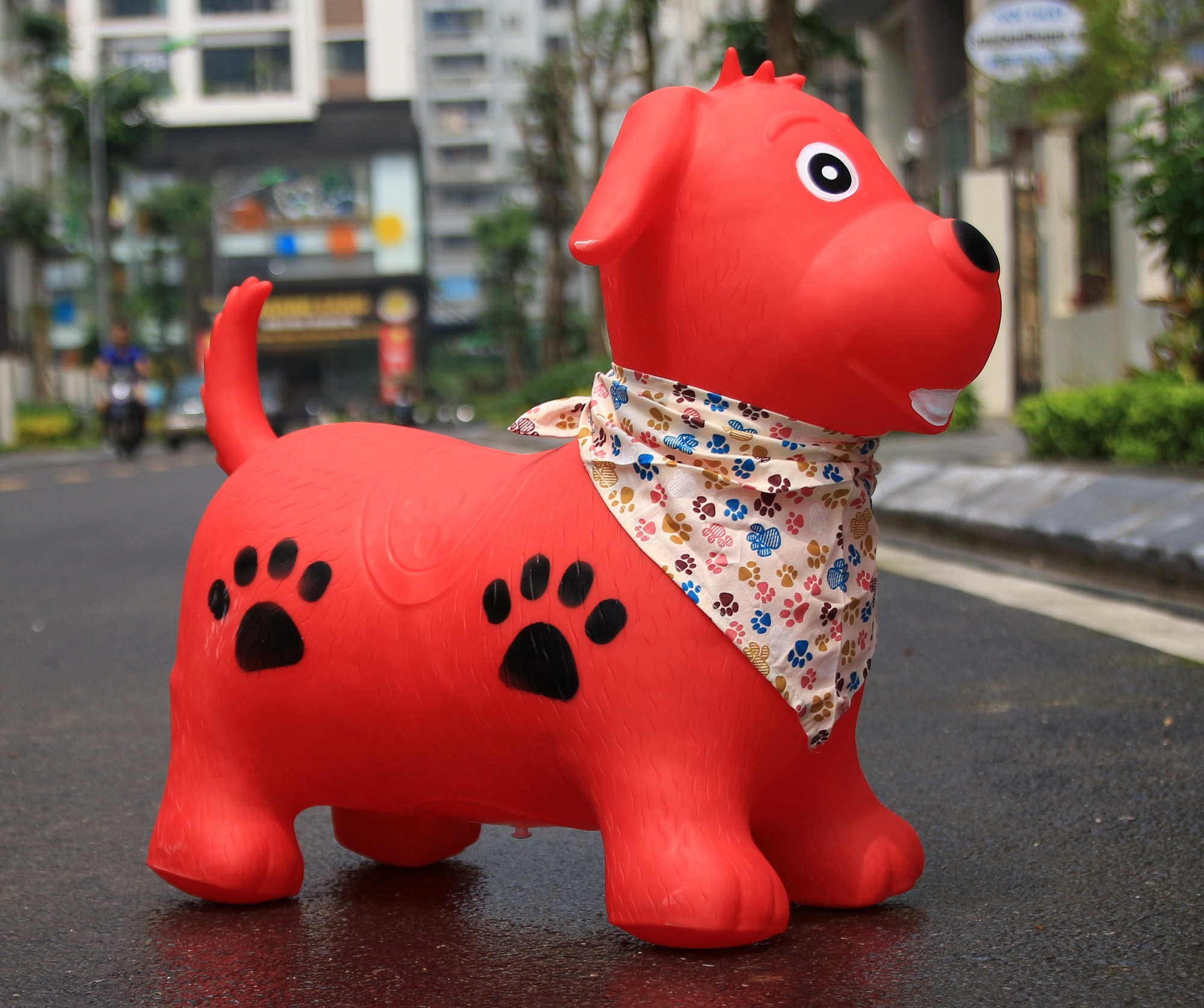 Thú Nhún Nhựa An Toàn Tặng Bơm Tay - Cún Đỏ