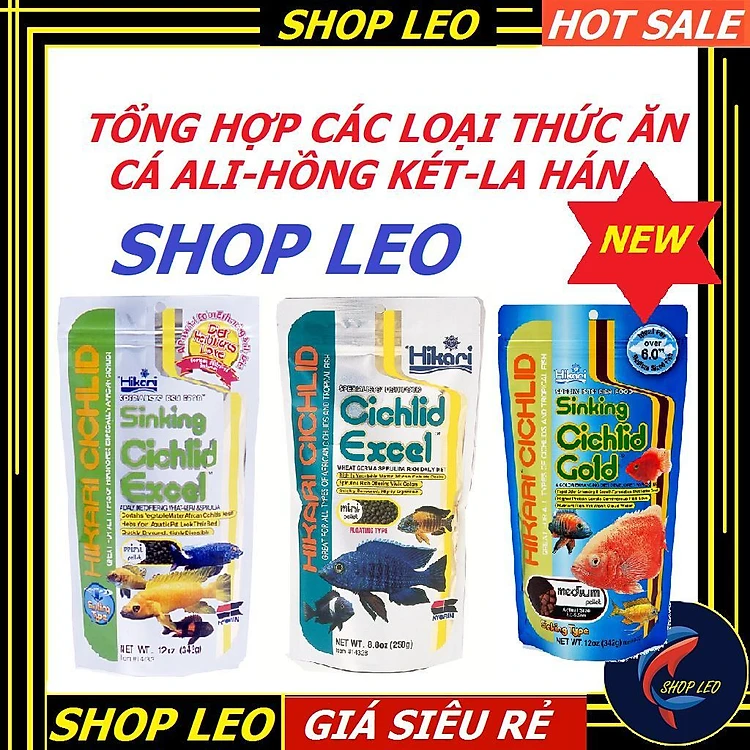 - Gồm 2 lọa là Thức ăn cá ali Hikari Cichlid Sinking Cichlid Excel (hạt chìm) (Gói 342g) và Hikari Cichlid Excel (gói 250g) - Hạt Nổi