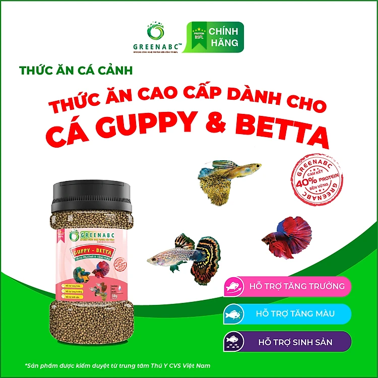 Thức ăn Cá 7 Màu GREENABC - Guppy & Betta – Hàm lượng protein 40% giúp tăng trưởng nhanh, lên màu đẹp, đề kháng tốt – Hộp 50g