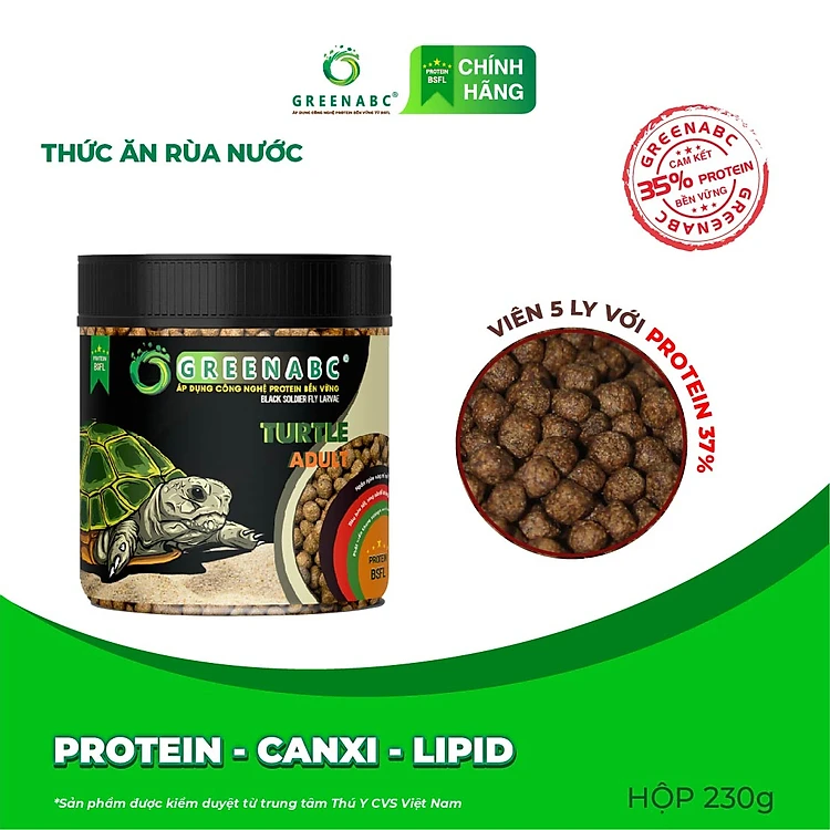 Thức ăn Rùa Nước GREENABC – Cung cấp dinh dưỡng tăng kích thước, mai cứng – Hộp 50g và 230g