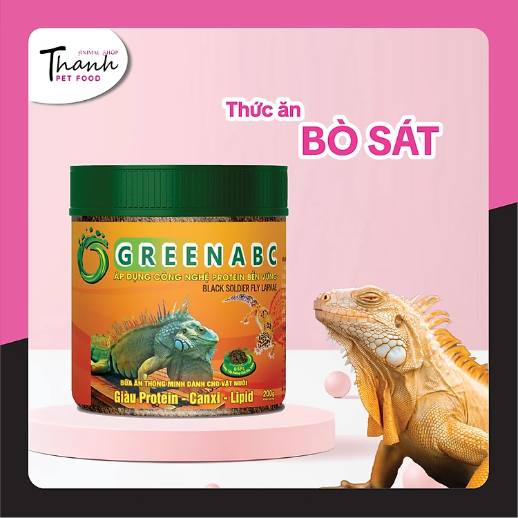 GREENABC là thức ăn cao cấp dành cho các loại bò sát: IGUANA, BEARDED DRAGON, LEOPARD GECKO. Đặc biệt sản phẩm GREENABC được sản xuất theo phương pháp Áp dụng công nghệ PROTEIN BỀN VỮNG từ bột đạm G.Meal rất giàu PROTEIN–CANXI–LIPID có trong BSFL*, đã được Mỹ (AAFCO) và EU chấp nhận đưa vào công thức cho ngành sản xuất thức ăn dành cho thú cưng.