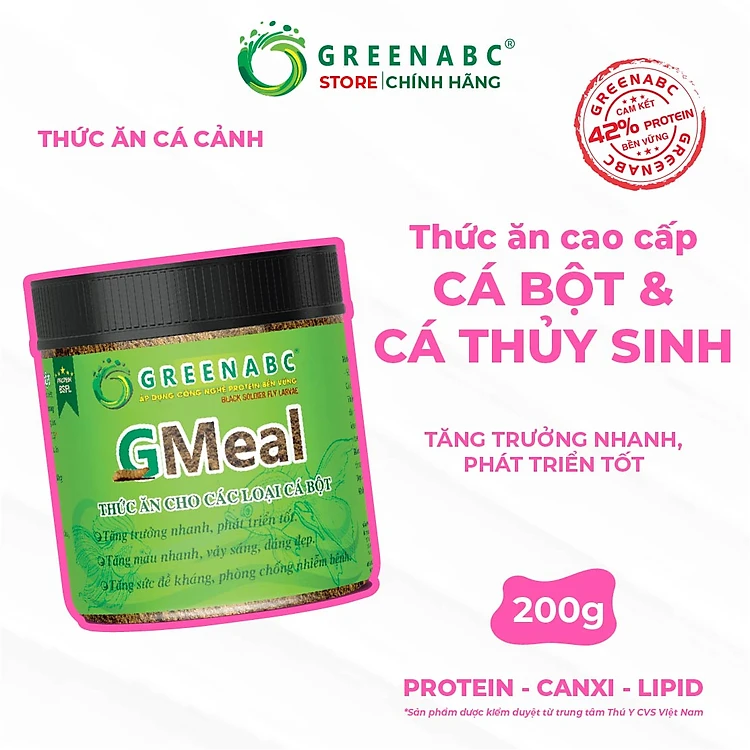 Thức ăn Cá Bột, Cá Thủy Sinh nhãn GREENABC – Độ đạm 40 giúp tăng trưởng nhanh, tăng đề kháng, lên màu – Hộp 200g