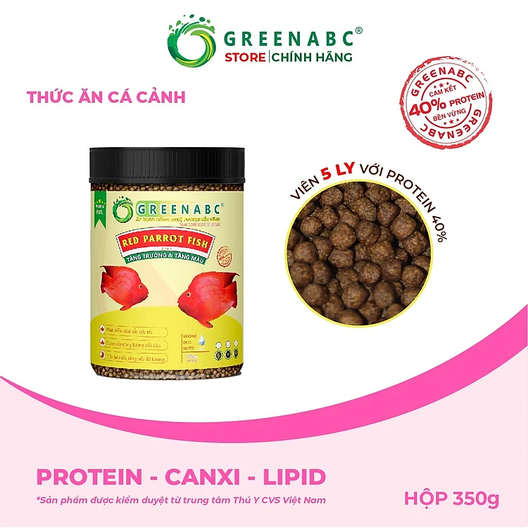 Thức ăn Cá Hồng Két nhãn GREENABC – Độ đạm 40% giúp cá tăng kích thước, lên màu đẹp, tiêu hóa tốt – Hộp 350g