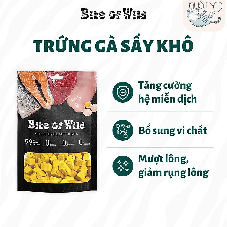 Thức ăn cho mèo Bite Of Wild Cỏ Mèo, Gan Gà, Trứng Gà, Thịt Tươi Sấy Khô Không Chất Bảo Quản