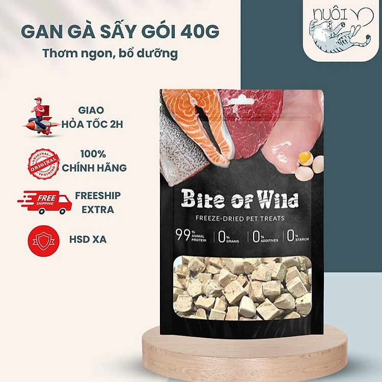 Thức ăn cho mèo Bite Of Wild Cỏ Mèo, Gan Gà, Trứng Gà, Thịt Tươi Sấy Khô Không Chất Bảo Quản